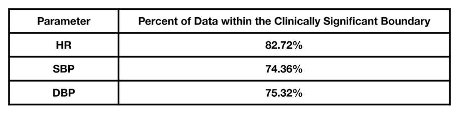 Table 4. A Majority Percentage of Data Points Fell within the Clinically Significant Boundaries of ±10 mmHg and ±10 bpm for Blood Pressures and Heart Rates, Respectively