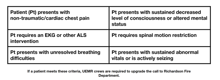 Table 1. Richardson Fire Department Advanced Life Support Unit Upgrade Criteria Examples