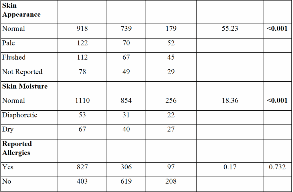 Table 2. Chi Square Analysis of Patient Outcome and Chief Complaint