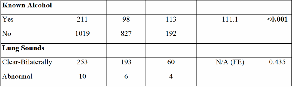 Alcohol consumption was seen to be among the strongest associated variables for NC-EMS support requests. The study CB-EMS agency’s guidelines stipulate specific release criteria for patients known to have consumed alcohol. This is due to the diminished level of consciousness associated with alcohol consumption and the requirement for patient orientation to release patients. For a patient to be released to themselves, the collegiate providers must ensure that the patient is A&Ox4 (Alert and Oriented times 4), has stable vitals, has not consumed other dangerous substances, last consumed alcohol at least 90 minutes prior, can walk with a stable gait, and can communicate risks of continued consumption. If these criteria are not met, collegiate providers request NC-EMS support, where custody of the patient can be transferred to the ALS providers.